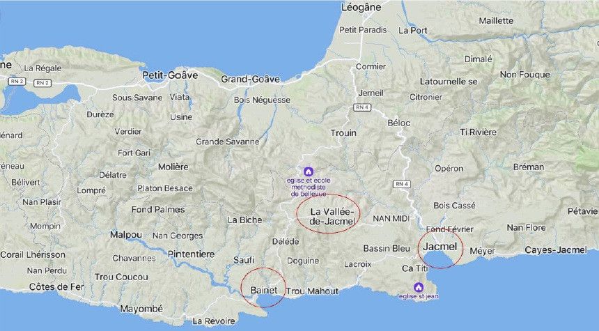 communes de La Vallée de Jacmel, Bainet et Jacmel